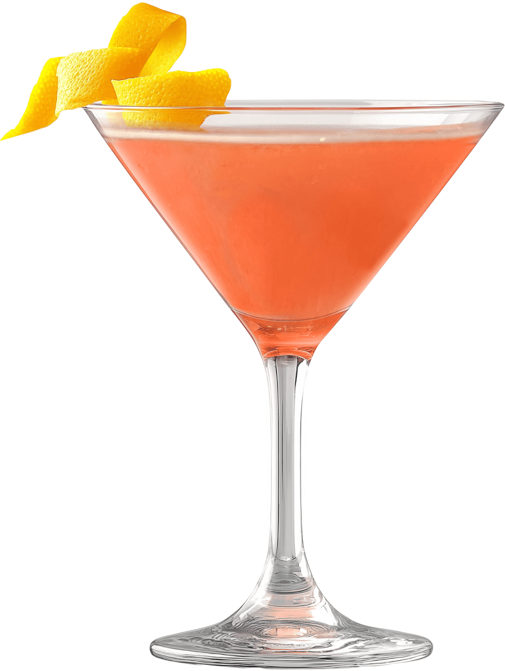 Shake first four ingredients with ice and strain into a martini glass. Garnish with a lemon twist and serve with a smile.