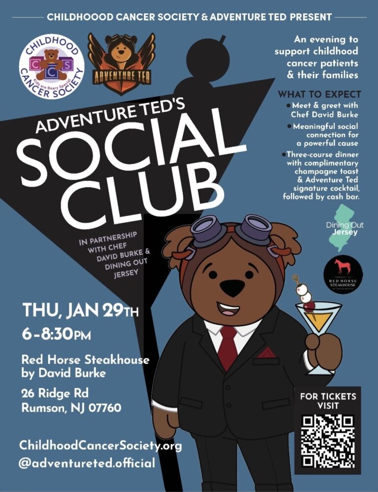 Named after the beloved superhero spokesbear of the Childhood Cancer Society, Adventure Ted’s Social Club is where great food, great company, and great purpose come together. This special gathering brings together compassionate, like-minded individuals for a night of celebration, community, and impact.