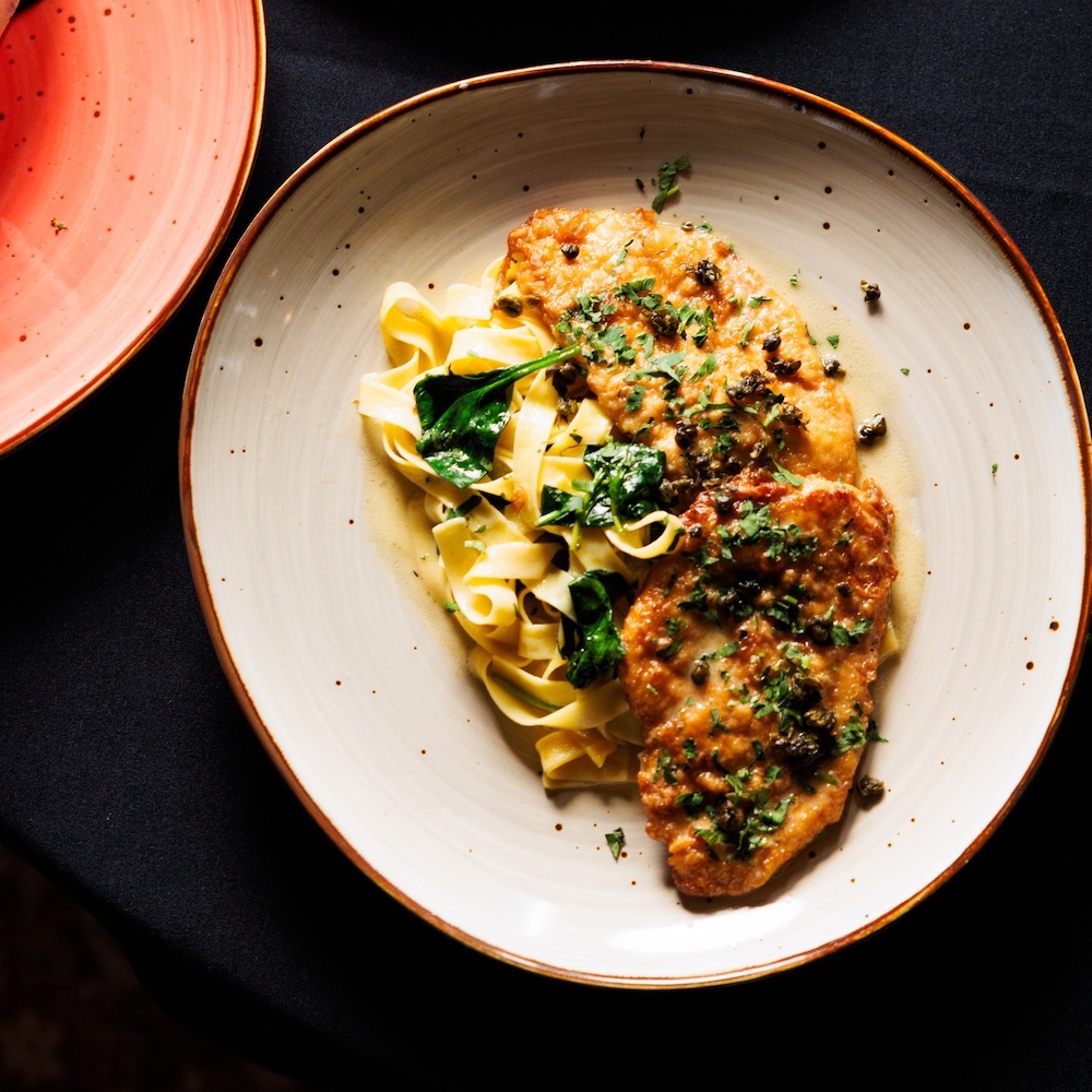 Chicken Francaise – Hand Rolled Tagliatelle, Spinach, Lemon Butter Wine Sauce
